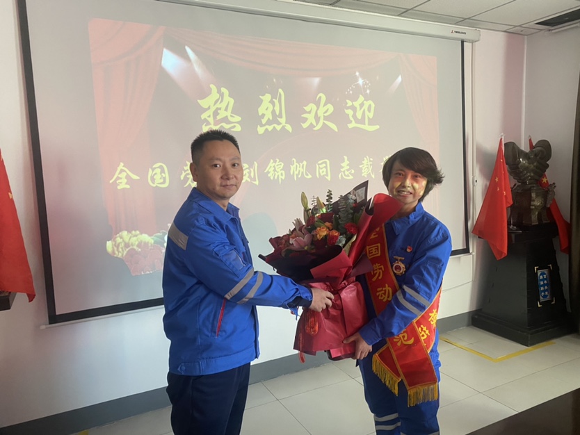 11月26日,劉錦帆同志在京接受表彰后回到了工作崗位,酒泉公司舉行了熱烈的祝賀儀式,歡迎劉錦帆同志載譽(yù)歸來。劉錦帆同志傳達(dá)了習(xí)近平總書記在全國(guó)勞動(dòng)模范和先進(jìn)工作者表彰大會(huì)上的講話精神。她難掩激動(dòng)的心情,說:“這份殊榮不僅屬于我個(gè)人,更屬于公司全體奮戰(zhàn)在一線的勞動(dòng)者。我只是風(fēng)電裝備制造戰(zhàn)線的一名普通勞動(dòng)者,在本職崗位上做了應(yīng)該做的工作,這份沉甸甸的榮譽(yù)背后是無數(shù)同事們不辭辛苦付出的結(jié)果。今后,我將傳承勞動(dòng)精神,發(fā)揮勞模作用,刻苦鉆研、不斷創(chuàng)新,為祖國(guó)風(fēng)電事業(yè)的發(fā)展作出更大的貢獻(xiàn)。”