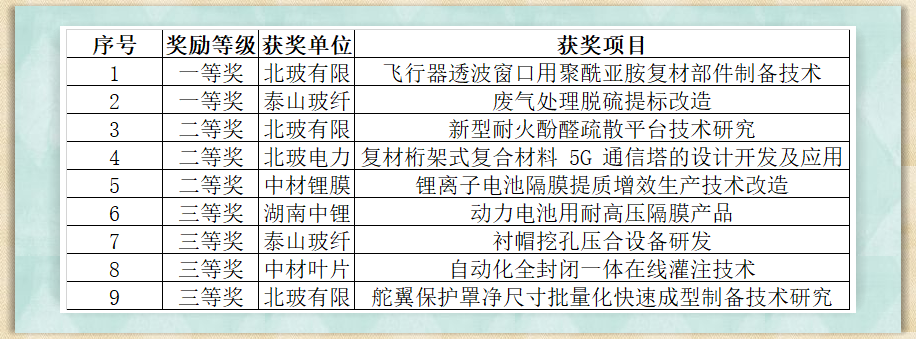 - 中材科技所屬子公司9項技術榮獲2020年度“中聯水泥杯”中國建材集團技術革新獎