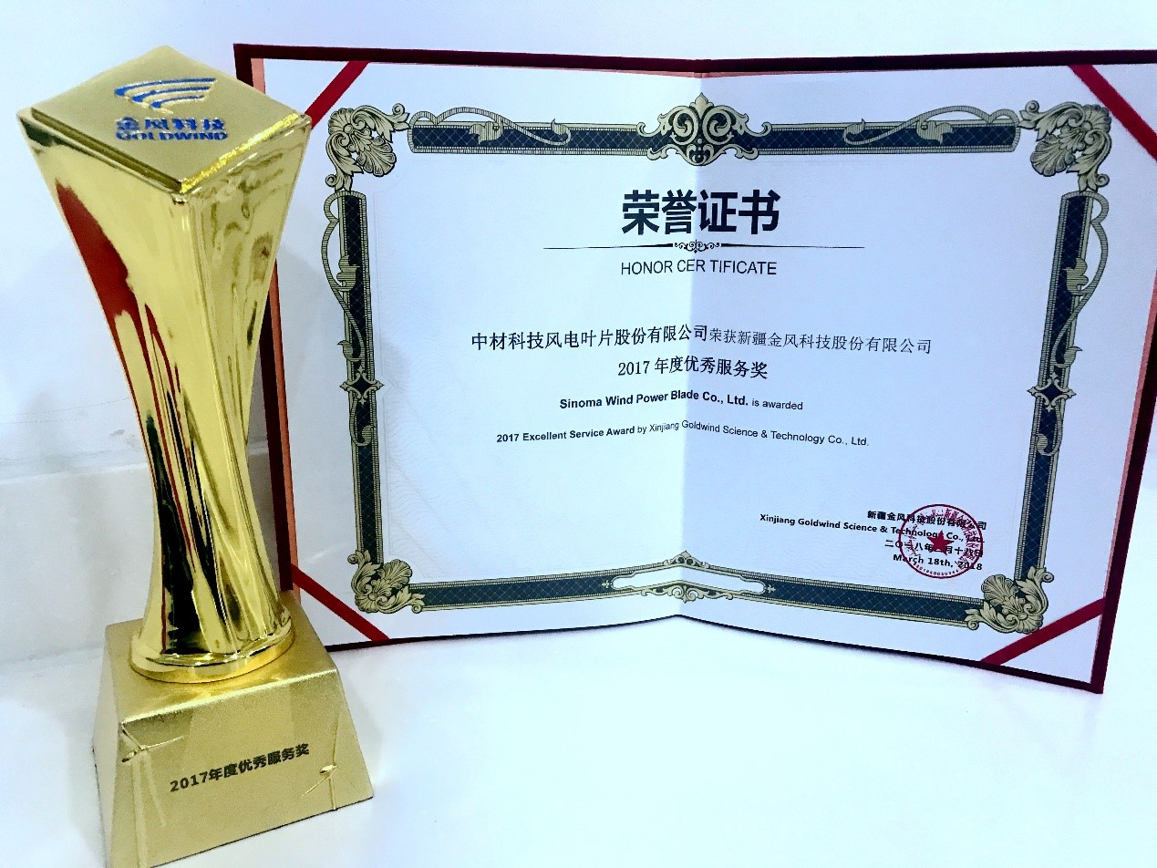 會上,中材葉片CTO Bart Roorda被金風(fēng)科技聘為技術(shù)顧問(葉片方面),副總經(jīng)理陳淳應(yīng)邀作了題為《攜手合作、共贏未來》的專題演講,得到金風(fēng)科技領(lǐng)導(dǎo)及其他供應(yīng)商的一致好評。金風(fēng)科技依據(jù)嚴(yán)格的評選標(biāo)準(zhǔn),從響應(yīng)速度、現(xiàn)場服務(wù)專業(yè)性等多個維度,對供應(yīng)商2017年的表現(xiàn)做出了全面評價。中材葉片擊敗眾多競爭者脫穎而出,榮獲金風(fēng)科技頒發(fā)的“2017年度優(yōu)秀服務(wù)獎”,也是唯一一家獲此殊榮的供應(yīng)商。