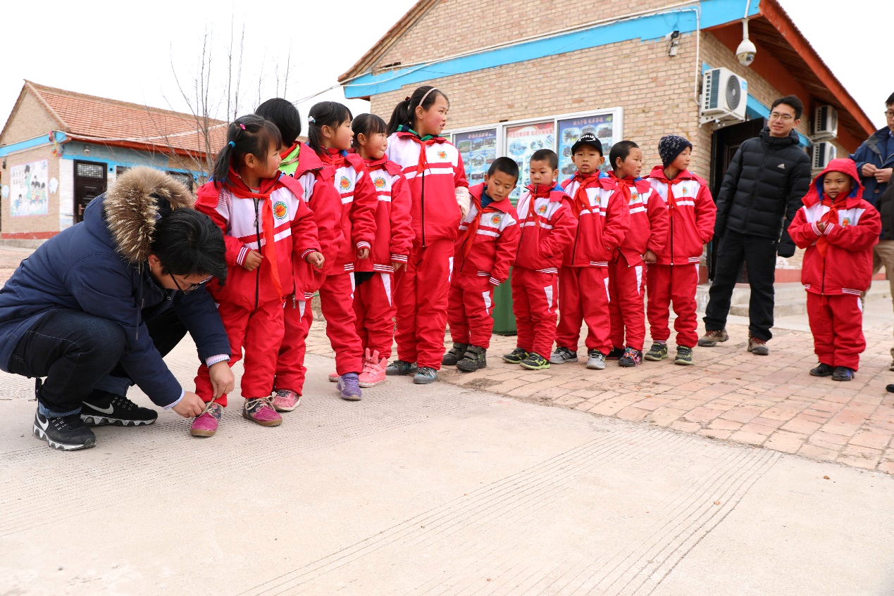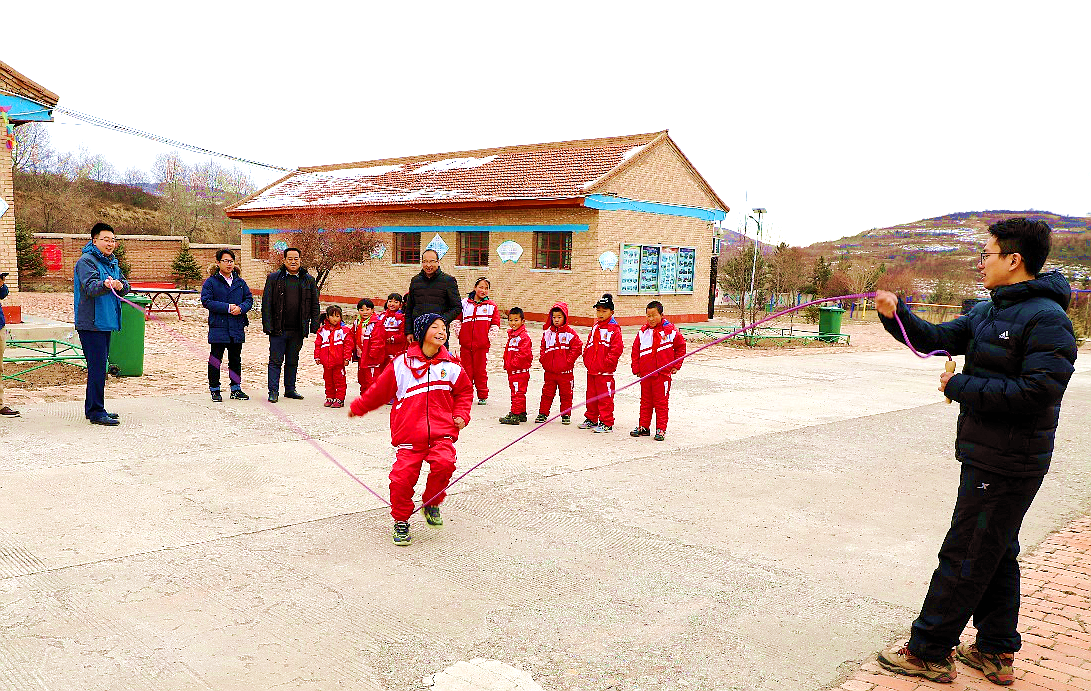課后公司青年和孩子們一起進行體育活動,歡笑聲、加油聲在小學(xué)里回蕩。